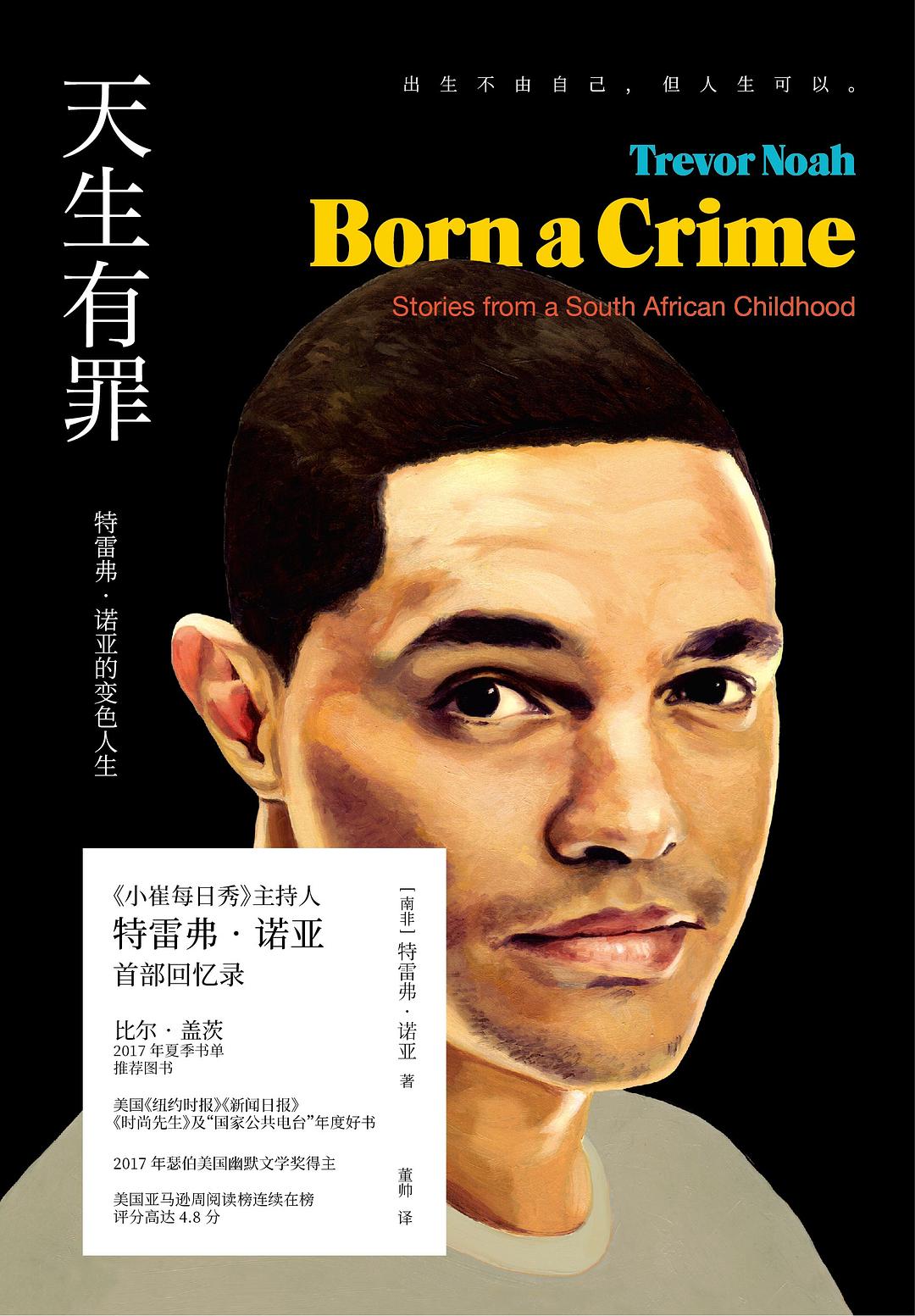 这本书的书名并没有夸大其词,作者 特雷弗·诺亚 的出身在当时就是一种罪:在种族隔离时期的南非,他的白人父亲(瑞士-德国裔)和黑人母亲(科萨族)之间的结合是违法的。特雷弗因此被归类为“有色人种”,在一个严格实行种族隔离的社会中,他不属于任何一个阵营。