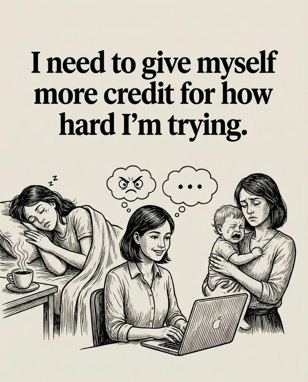 “我要为我如此努力而给自己更多肯定。”(I need to give myself more credit for how hard I'm trying) 生活中的很多努力是隐形的:你为了早起做的挣扎、你即使心情不好依然礼貌回复邮件、你在崩溃边缘依然照顾好了孩子。Mel 强调,努力本身就值得被看见,即便结果尚未显现。如果你总是等待外界的表扬,你可能会等一辈子。通过这句话,你成为了自己最好的拉拉队长,这种自我认可会形成正向循环,让你更有动力坚持下去。