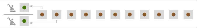中间的点表示任务的状态,在上一个任务完成前,下一个任务不会被执行,因为只有一个 worker。