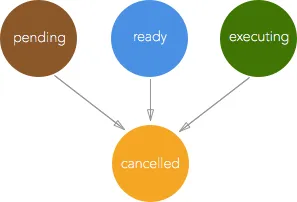 从上面的图可以看到,正在被执行的任务的状态跟在后面排队的状态是不一样的,有这么几种状态:pending, ready, executing, finished, cancelled。