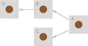任务 A 需要等待 任务 B 和 任务 C 完成,才能被执行,而任务 B 需要等到 任务 D 完成才能被执行。