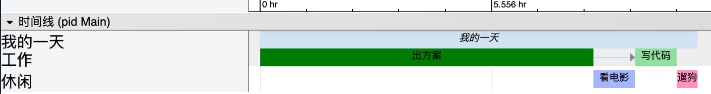 有一些事件,它不是执行耗时,但包含了其他事件,比如「我的一天」,它不是一个可被执行的事件,但将一天做的事情包含进来。这些被称为「异步事件」,表现上就像这样: