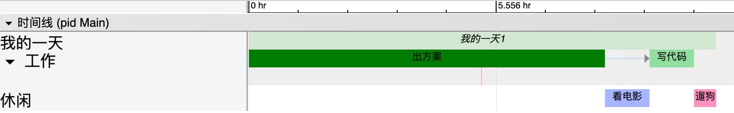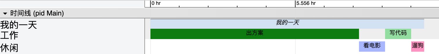 {"name": "写代码", "ph": "X", "pid": "Main", "tid": "工作", "ts": 32400000000, "dur": 3600000000},