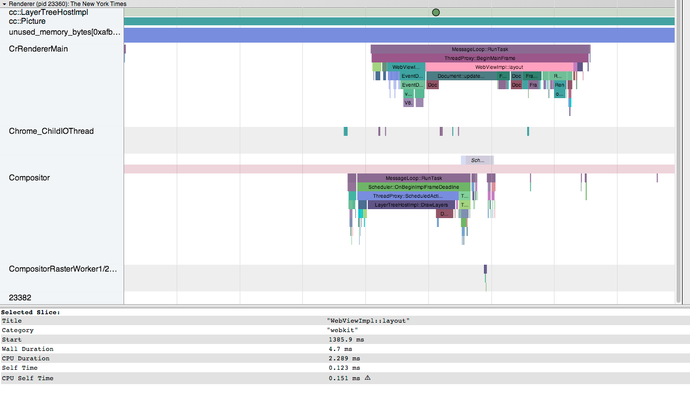 从这两个项目可以看出来 Trace Viewer 对于呈现「某段时间发生了什么」 还是有过人之处。