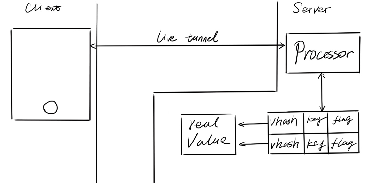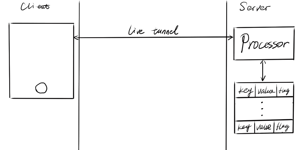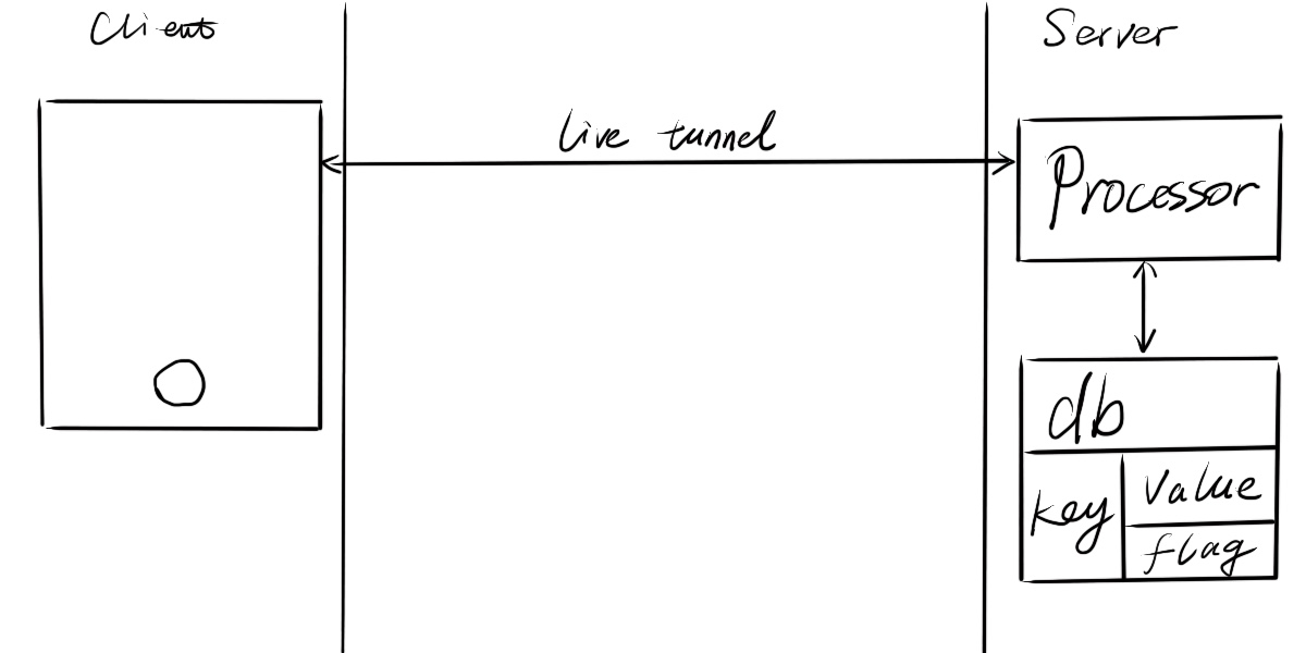 客户端和服务端保持一个长链,当在后台操作配置时,会把这个配置以 K/V 形式存储,然后通知 Procesor,后者拿到 K/V 之后把它推给客户端,整个过程就完成了。这是最原始的形态,接下来会在这个基础上进行演化。
