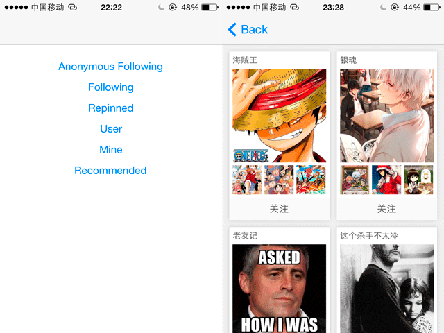 这次改版的另一个尝试就是使用 RAC 和 MVVM,还是挺有些挑战的。之前的学习更多的是理论,并没有太多实际的使用,所以也遇到了不少问题。比如何时使用 property,何时使用 signal;多个 Controller 共用一个 VM,但其中一个又有一些独有的 property;潜意识里会使用原有的 cocoa 编程模式;出现问题,调试起来有点麻烦等等。尽管如此,RAC 还是很值得尝试的,就像一匹烈马,很难被驯服,但一旦被驾驭,这种成就感也是无可比拟的。