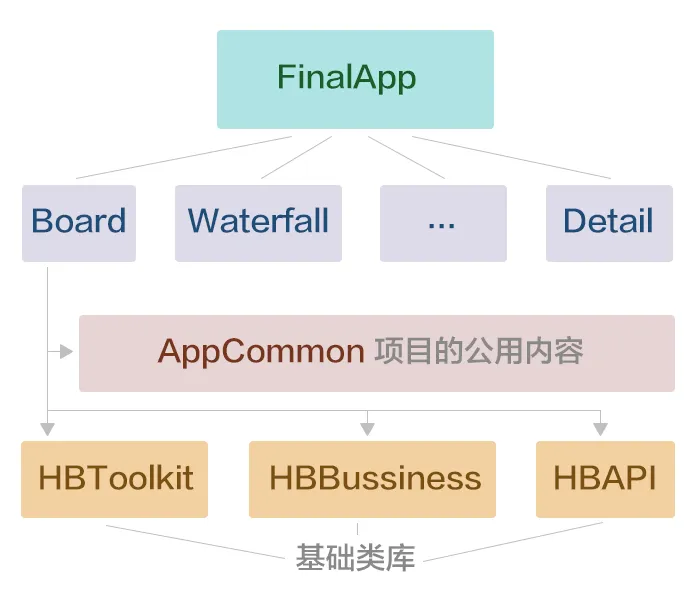 其中最底层是其他项目也会引用的基础类库。HBToolkit