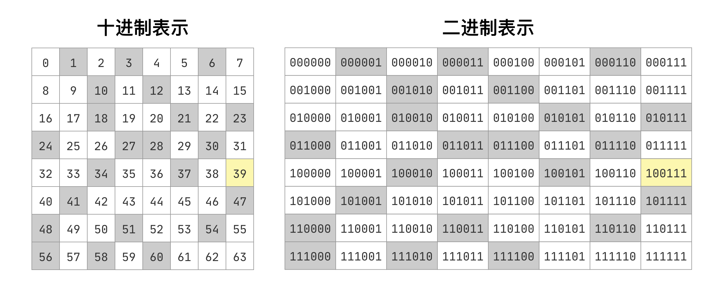 那有没有可能棋盘本身就能组成 6 只老鼠呢?假如可以,就让每只老鼠分别代表一个二进制位