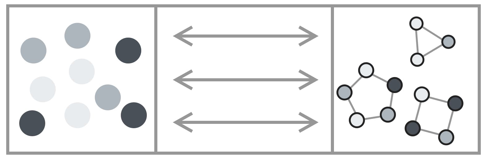 左边是词汇库,右边是有明确意思的完整的句子,中间的双向箭头表示:当别人提到这些词汇时可以知道对应的意思,当自己想要表达时,可以知道应该用哪些词汇。线的粗细表示这种 Effortless 的程度(线越粗越不费力)。