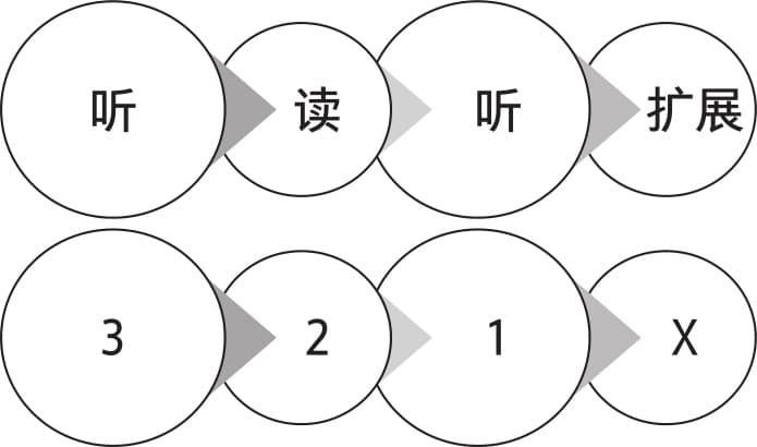 这里引用 《中国人英语自学方法教程》里提到的 321X 法:
