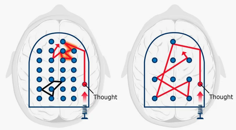 我们都知道大脑是很复杂的,那么来简化一下,可以想象成大脑以两种不同的模式工作。第一个是「专注」,另一个则是「发散」。我们用一个弹球机来描述这两种状态。