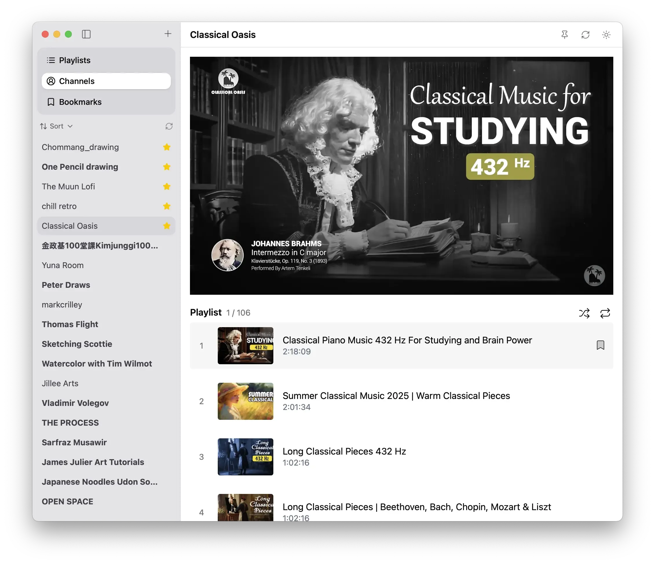 既然能添加 Playlist 了,我也会顺手把 YouTube 上感兴趣的 List 加进来,省的每次都要打开 YouTube。那既然 Playlist 可以添加,Channels 不加好像也说不过去,于是就变成了这样。