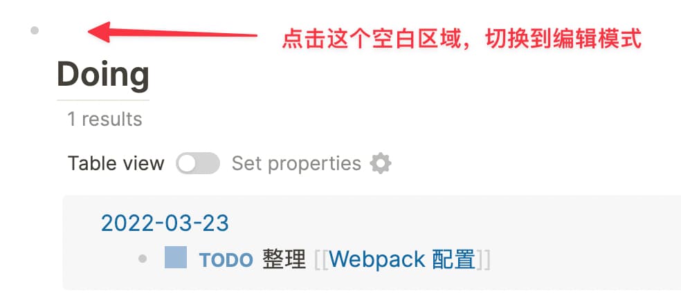 如果这几个 Todo 做完了,可以从其他标为 Favorite 页面的待办里挑几个出来。「挑」的过程就是将 Block 的 /TODO 切换为 /DOING,然后 copy ref 到今天的 Todo 列表里。