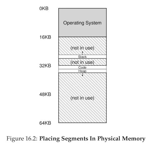 base and bounds 这种做法最大的问题在于空间浪费,Stack 和 Heap 中间有一块 free space,即使没有用,也被占着,那如何才能解放这块区域呢,就有了下面的做法。