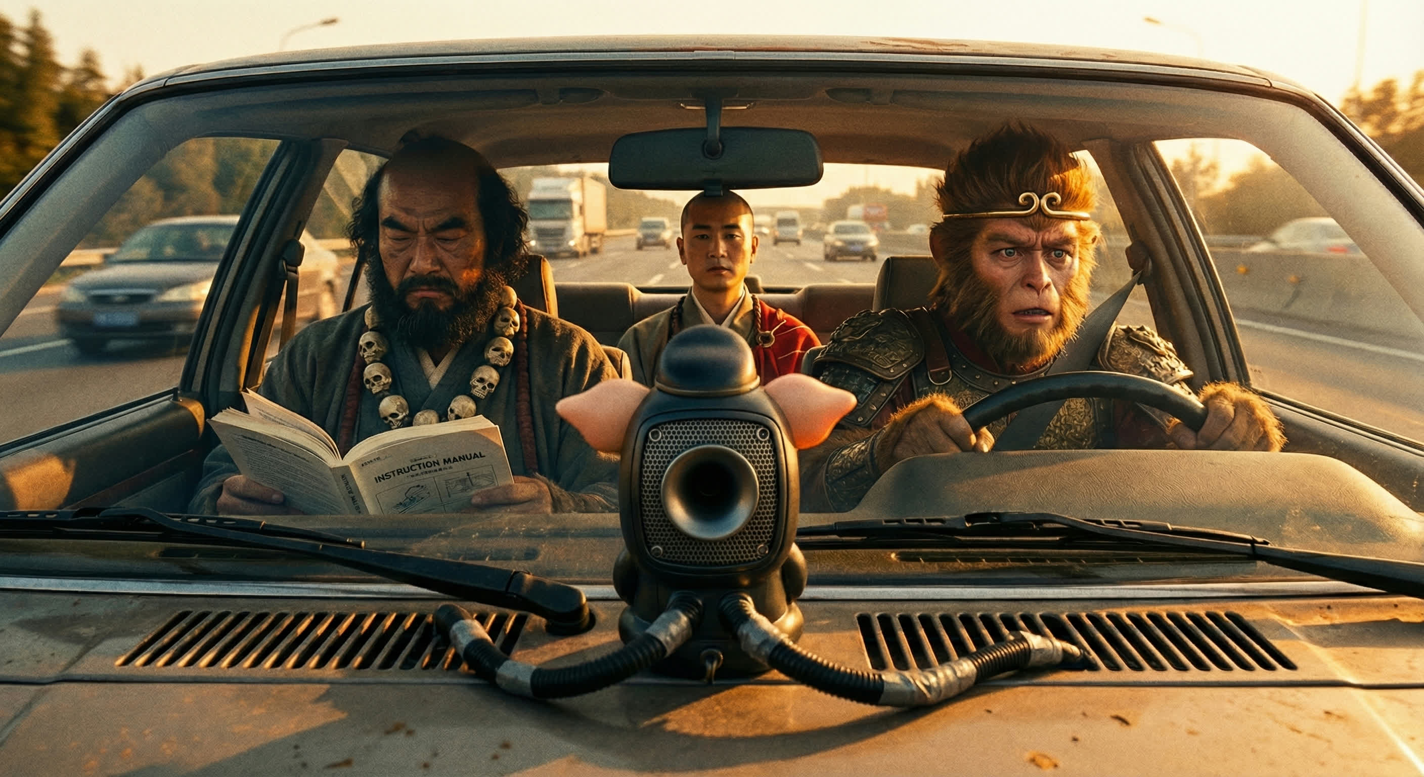 我们无法消灭猪八戒,离不开孙悟空和沙僧,还需要后座的唐僧在场,并在必要时进行审视,这样才能在混乱的现实公路上,穿越噪音,驶向真正的彼岸。